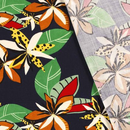 Midnight Blue Viscose Twill Flowers Navy 19031-008