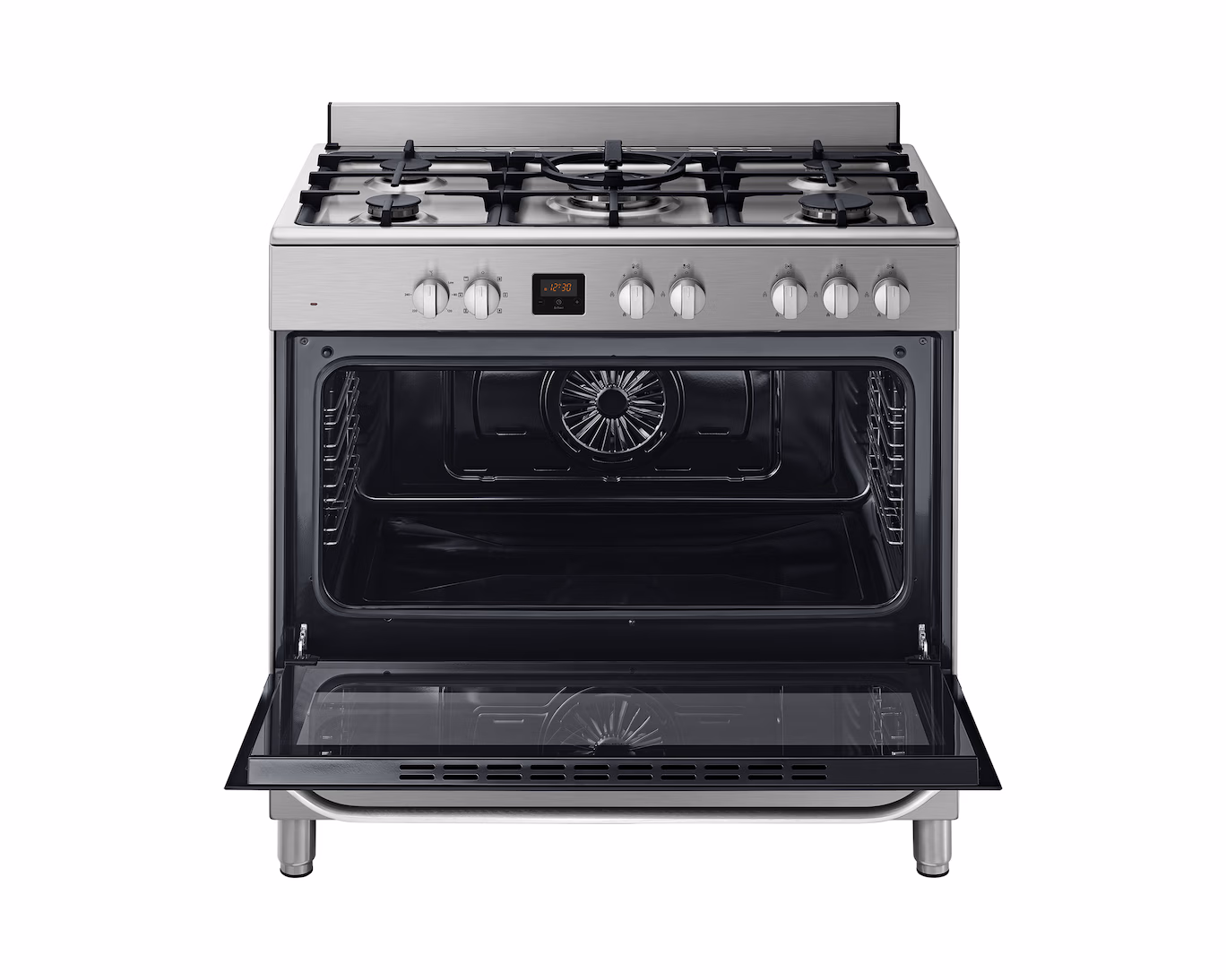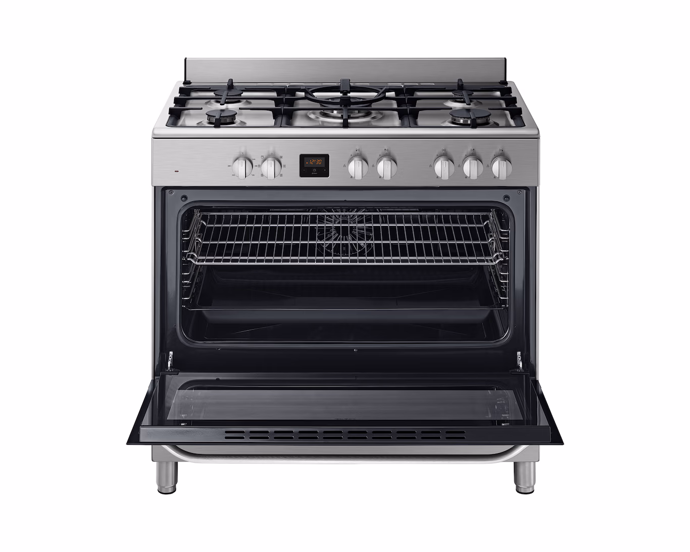 The Samsung 95 L 90 cm 5 Gas Burner Cooker is a freestanding kitchen range designed for versatile home cooking. With a spacious 95-litre oven and a five-burner gas cooktop, it’s ideal for families or anyone who likes to cook multiple dishes at once. The standout feature is the triple-flame wok burner, giving powerful heat for fast and even cooking — perfect for stir-fry and high-heat dishes.