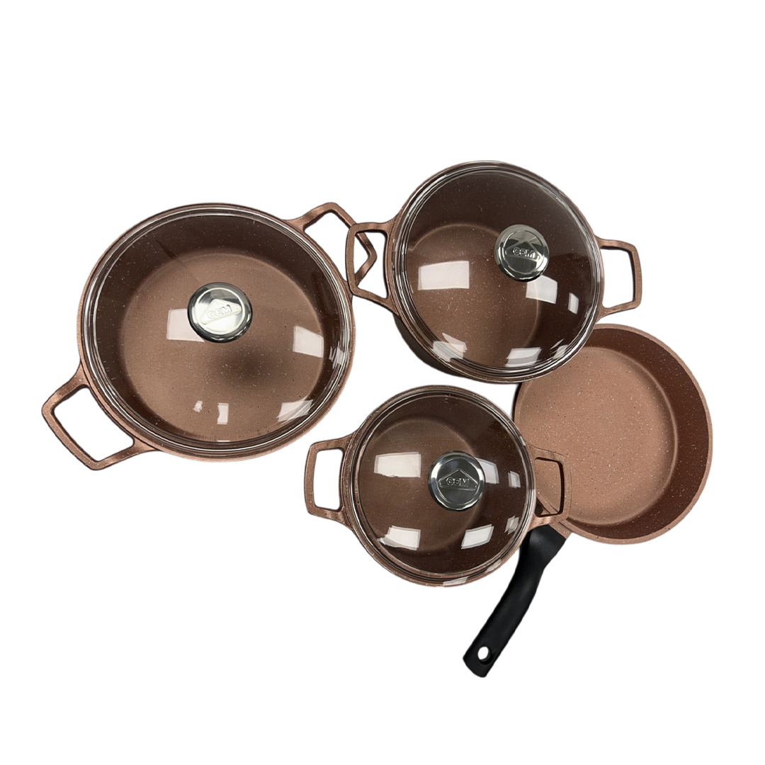 Metro Lifestyle sells the Rose CEM Cast Aluminium 7 Piece Set, a premium cookware collection designed for both functionality and style. This set includes a variety of essential pots and pans, each made from durable cast aluminium that ensures excellent heat distribution for consistent and efficient cooking. The stylish rose-colored finish adds a touch of elegance to your kitchen while the non-stick coating allows for healthier cooking and easy cleanup.